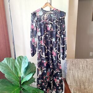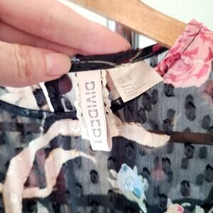 H&M DIVIDED Sheer Ruffle BOWS Floral Black Y2k Dress Sz Small Ruffle