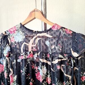 This is an adorable Bows and Floral Black sheer dress with ruffle sleeve.