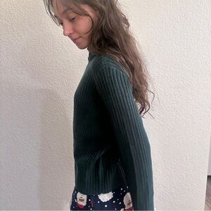H&M Divided Green Ribbed Knit Long Sleeve Mock Turtle Neck Sweater, Winter, Holiday Trendy & Cozy
