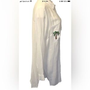 H&M Divided Long Shirt with Applique White Long Sleeve Buttons At cuff Size 14