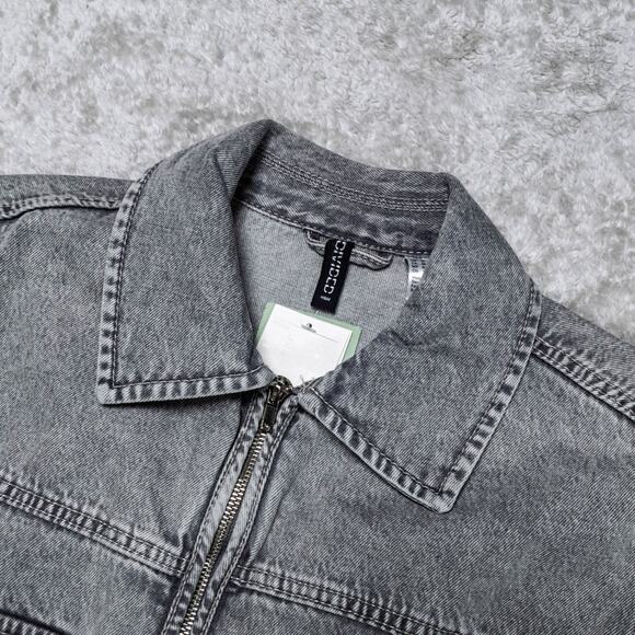 H&M Gray Denim Utility Cargo Jacket Full Zip Womens Size M NWT