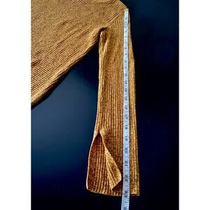 H&M Mustard Yellow/Brown Speckled Pullover Sweater size S. Featuring a crew neck collar, ribbed knit, exaggerated side slits and slit accent on cuffs.