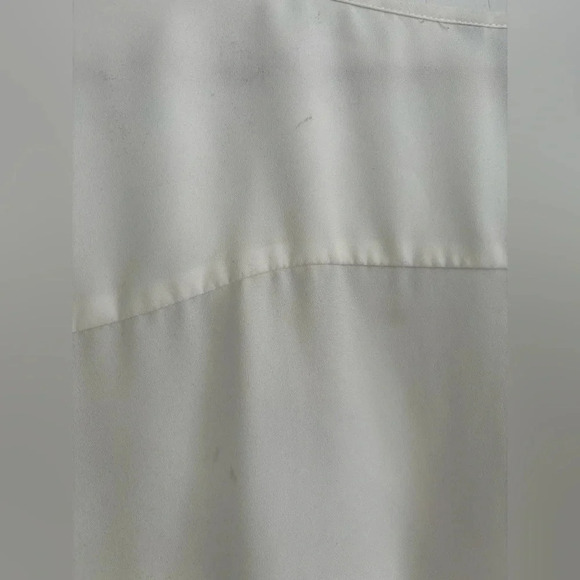 H&M White Cream Chiffon Like V Neck Button Down Tassles Gold Blouse Size 14