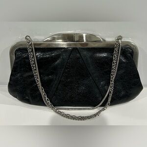 Authentic HOBO Black Leather Clutch with Silver Chain handbag