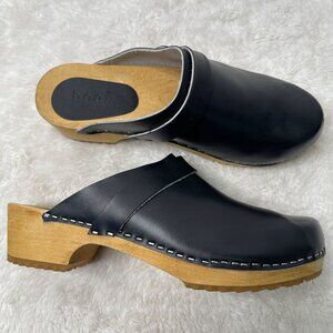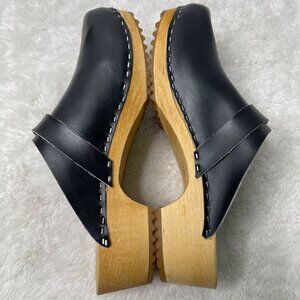 HOOF Women's Black Chloé Apache Leather Slip On Clog Round Toe Shoes Size 41