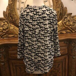 HORSE Theme knit top.  Size Medium.  Brand?  1/4 Button Down. Pullover.  Center back length is 25.6".  Back yoke with center box pleat.  Sleeve length 19.4".  Bust 40.5".