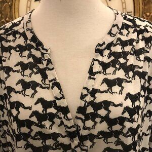 HORSE Theme knit top. Size Medium. Brand? 1/4 Button Down. Back Yoke. B22