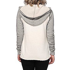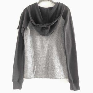 Stay cozy in this soft pullover hoodie featuring a distressed California Love bear graphic screened on the front. With contrasting raglan sleeves and intentionally unfinished hems. Soft terry cloth lining. Note that the images with the models are only to show fit, and the color of this item listed here is a dark gray/light gray combination (see photos). Only worn once and in excellent condition. Material is 60% Cotton and 40% Polyester.