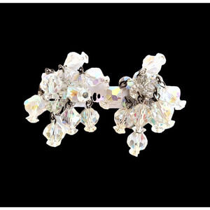 Vintage Laguna Faceted Aurora Borealis Beaded Dangle Chandelier Clip On Earrings