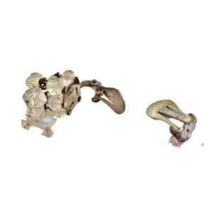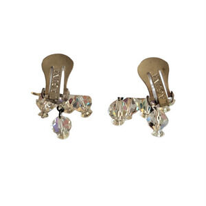 HP Vintage Laguna Faceted Aurora Borealis Dangle Chandelier Clip On Earrings