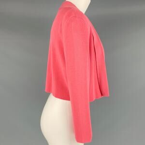 HUGO BOSS Size M Pink Viscose Cotton Rib Knit Cropped Open Front Cardigan