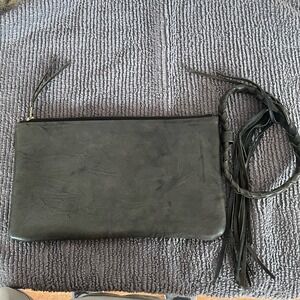 Hacienda Montaecristo Large Wristlet Black Gray Leather Artesian Handmade Mexico
