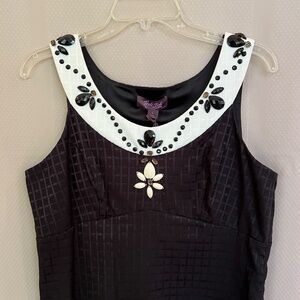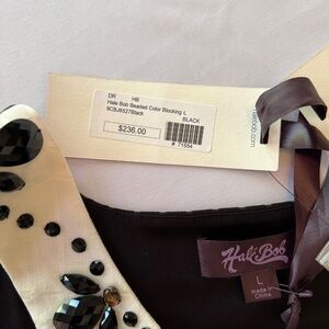 Hale Bob Beaded Color Blocking Dress Black/ White Sz L NWT