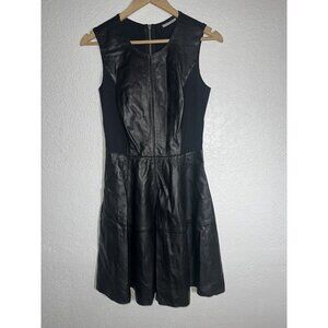HALOGEN 100% LEATHER DRESS PONTE BLACK FIT FLARE CAREER SIZE 2 $295 (B).