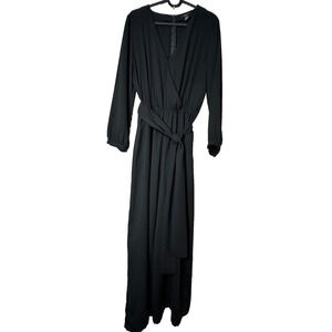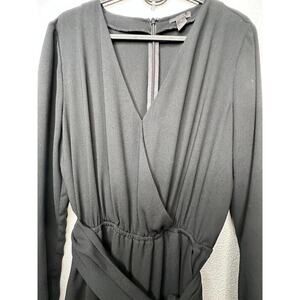 Halogen Black Women's Longsleeve Belted Jumpsuit Size M V-Neck Pockets