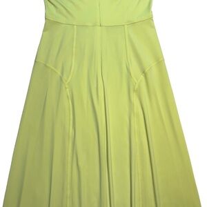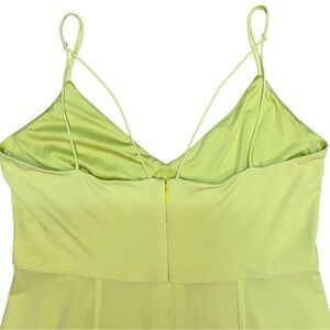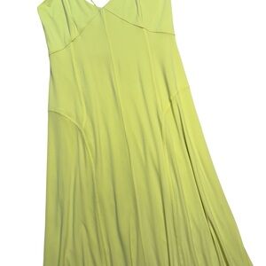 Chic midi dress with thin straps. Bright neon hue that can read neon green as well as yellow. Perfect for sunny days.