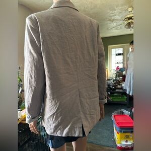 Halston Linen Blend Suit Jacket - never worn, with tags. Size L. Inside has a pin stripe pattern. Very nice business casual jacket.