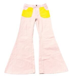 Hammies Vintage Color Block Pink Flare Leg Bell Bottom Corduroy Jeans Size 30