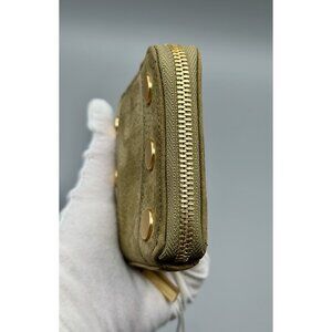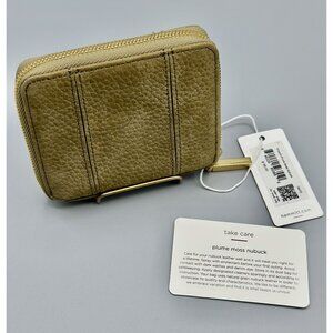 Hammitt 5 North Plume Moss Green Nubuck Leather Compact Zip Around Wallet 16470