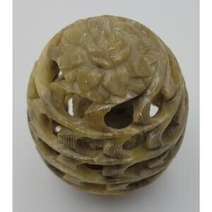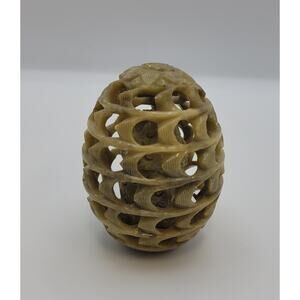 This is a Hand-Carved Egg Natural Soap Stone with Owl Figurine Inside