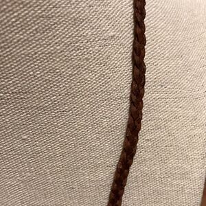 Handcrafted necklace with scull pendant on brown braided leather cord with lobster claw clasp and end caps. Hardware and scull is silver toned. Cord is 18 in long. Pristine condition. Unisex.