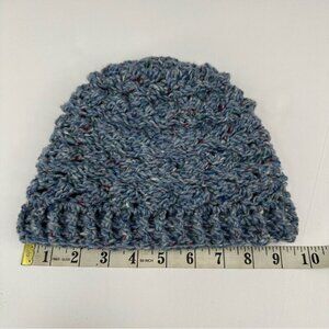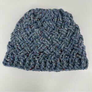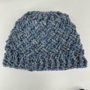 Hand-knit unisex warm and cozy beanie fits most Adult Small - Medium sizes, blue basketweave pattern, stretchy, easy care, soft, and can be worn rolled up or down. Care machine wash cold lay flat to dry. Material coveted donegal tweed pure wool. The sustainable yarn was made in the Republic of Ireland from Donegal Tweed sweaters they repurposed. Condition is new and never worn. Please preview measurements to ensure fit. This was hand-knit in San Jose by an artist with a passion and talent for creating quality beanies, sweaters, scarfs and dog sweaters.