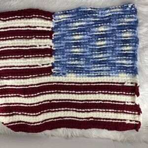 Handmade USA Flag Theme Bernat Alize Soft Crochet Afhgan Throw Blanket 31 X 55