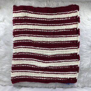USA Flag theme handmade 31 X 55 inches throw, this amazing soft crochet patriot fourth of July inspired throw can be used for armchairs, couch, bed, guest room, baby room and living rooms.  Vibrant maroon red, white, light and medium blue colors crochet loop yarn - regular knit stitch.  Materials Bernat Alize.  Care hand wash line dry.  Condition new unused as shown in pictures.  Local artist from Riverside, CA.