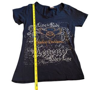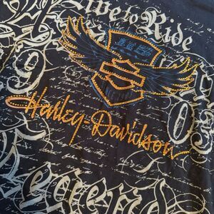 Harley Davidson Size S Live To Ride Rhinestone Bedazzled Tee Black AOP Bling