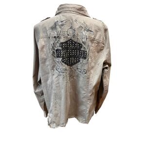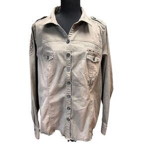 Harley Davidson woman’s 2xl military faded green button up motorcycle shirt