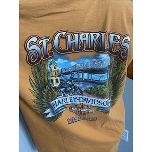 Harley-Davidson Black Short Sleeved Shirt L Large LG St Charles Missouri Orange