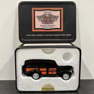 Harley-Davidson Vintage Collectable Die Cast Model Truck Coin Bank & Display Tin. 1940 Ford Woody Station Wagon.