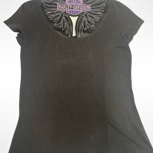 Harley-Davidson Women's Black T-Shirt double sided with wing design size large