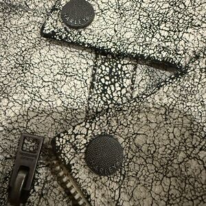 Stylish Harley-Davidson leather jacket. Distressed gray design. Features multiple zippers and snap buttons. Perfect for a bold look.