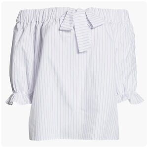 NWT Harshman Coastal Gruner Off Shoulder Linen Blend Top White & Lavender Stripe. Size 3X.