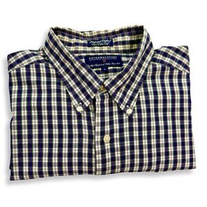 Hathaway Sport Shirt Mens Large Plaid Button Down Long Sleeve Pinpoint Oxford