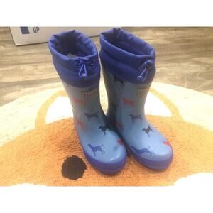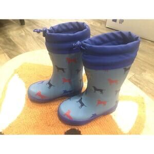 Very cute Hatley toddler boys Sherpa fleece lined, red & blue dogs winter/rain boots. Size US 9. Excellent gently used a small handful of times condition. Well cared for. No scuffs, scratches, marks, etc on these boots. Still has the original sticky tags on inside of shoes. 9-9.5 out of 10 if I had to rate. Originally paid $65 for these Hatley rain boots. (#285)