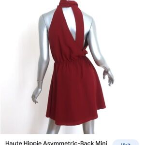 Haute hippie burgundy mini halter dress size large new whith tags armpit to armpit is 20 inches waist is 15 inches elastic waist the length is 38 inches