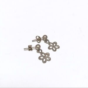 Sterling silver Hawaiian Plumeria earrings. Post backing. Anthropologie tagged for exposure only.