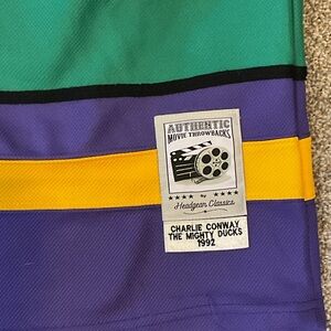 Headgear Classics Authentic Movie Throwbacks Mighty Ducks Charlie Conway 96 Jersey. 96 on each arm, Conway 96 on back, Duck Logo on front. Excellent condition. 2XL