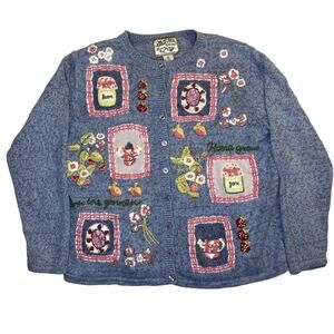 Heirloom Collectibles Women's M Blue Sweater Cardigan Baking Garden Y2K 2000