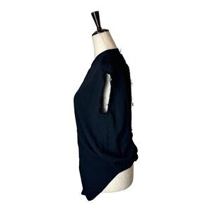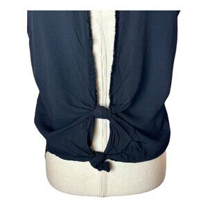 Helmut Lang Shirt Women Small Black Jacquard Split Back Knot Button Front Top