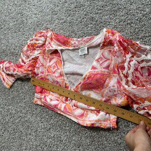 Hemant & Nandita Womens Medium Puff Sleeve Work Cropped Top