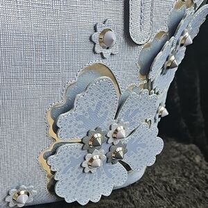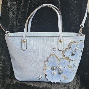 Henri Bendel Stunning Periwinkle Blue & Gold Tote with 3D Floral Cutouts NWT