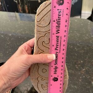 Size small based on 9.5" measurement, not marked on Sandals. Estimated to fit 5-6-7.
