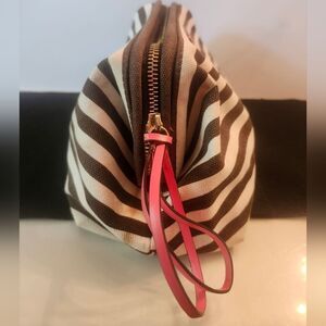 Henri Bendel Signature Striped Canvas Cosmetics Zipped Pouch/Case Ret.$175