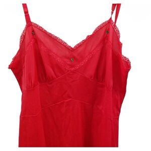 Henson Kaepernick Vtg Red Floral Nylon Lace Trim Nightgown Slip Dress