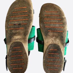 Hermes Brown & Green Suede Sandals