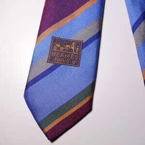 Hermes Paris multicolor striped 100% silk tie made in France.