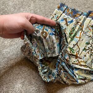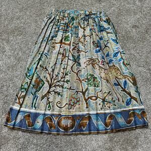 Skirt is pleated and has been altered to be made shorter, extra fabric is folded on inside